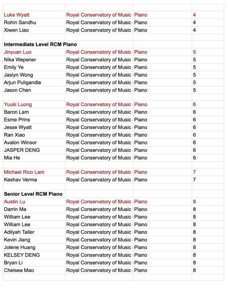 2025 Award Winners for Studentsof ARMTA Edmonton Branch members Practical winners names are in RED.Thoery winners names are in BLUE.